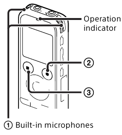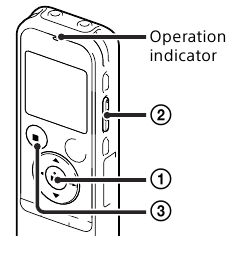 Преди да започнете да използвате IC recorder-а, уверете се, че сте плъзнали Operation HOLD•POWER ON/OFF (задържане•включване/изключване на захранването) превключвателя към центъра, за да освободите HOLD (задържане) статуса.-
