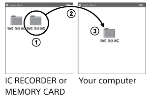Можете да копирате файловете и папките от IC recorder-а на вашия компютър, за да ги съхранявате.
