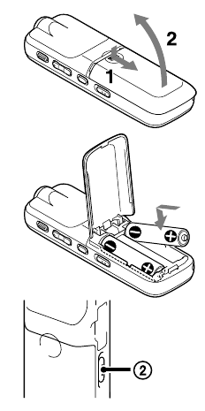 Работете с IC recorder на 3.0 V или 2.4 V. Използвайте две LR03 (размер AAA) алкални батерии или NH‑AAA акумулаторни батерии.