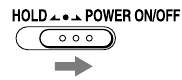 Плъзнете и задръжте превключвателя HOLD•POWER ON/OFF в посока "POWER ON/OFF" за повече от 1 секунда.