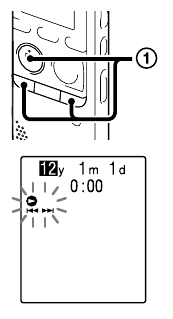 Когато поставите батерия за първи път или след като IC recorder е бил без батерия повече от 1 минута, "![]()