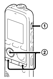 Преди да започнете да използвате IC recorder, уверете се, че сте плъзнали превключвателя HOLD•POWER ON/OFF към центъра, за да освободите HOLD (Задържане) статуса.