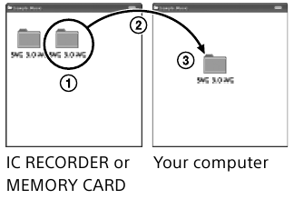 Можете да копирате файловете и папките от IC recorder на вашия компютър, за да ги съхранявате.