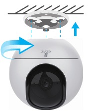 Монтирайте камерата към основата и я завъртете по посока на часовниковата стрелка, докато се фиксира.