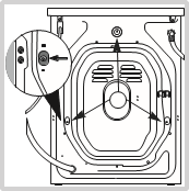 - Отстранете 3-те защитни винта (използвани по време на транспортиране) и гумената шайба със съответния дистанционер, разположени на задната част на уреда (вижте фигурата).