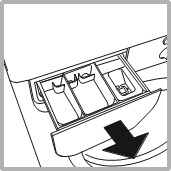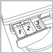 Отворете чекмеджето за дозиране на перилен препарат и изсипете перилния препарат или добавката за пране, както следва.