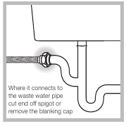 Където се свързва към тръбата за отпадни води, отрежете края на щуцера или отстранете запушалката