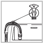 Ако е поставен над ръба на леген или мивка, уверете се, че свободният край на маркуча не трябва да е под вода.