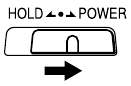 За да освободите IC recorder-а от статуса HOLD (задържане), плъзнете превключвателя HOLD•POWER към центъра.