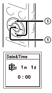 Когато поставите батерия за първи път или след като IC recorder-ът е бил без батерия повече от 1 минута, се появява анимацията "Set Date&Time" ("Задаване на дата и час"), след което секцията за годината започва да мига.