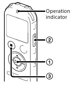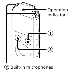 REC/PAUSE (запис/пауза) отново, за да рестартирате записа. - Поставете IC recorder-а така, че вградените микрофони да са обърнати към посоката на източника, който ще бъде записан.