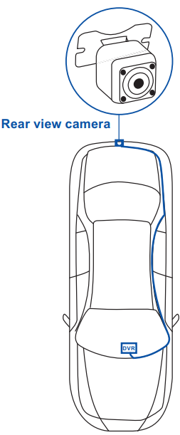 Камерата за задно виждане е опционална. Ако е с камера за задно виждане, камерата за кола ще има двоен запис (отпред и отзад). Освен функцията за запис на задно изображение, задната камера може да се използва като система за задно виждане за движение на заден ход. Камерата за задно виждане е свързана с [AV IN].