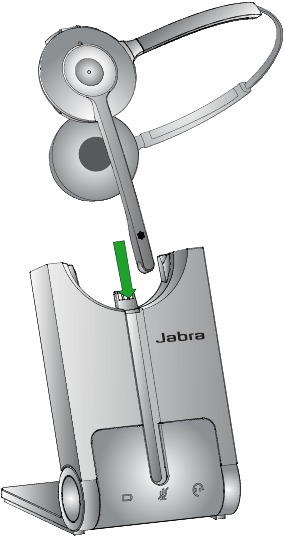 Докато е поставен в базата Jabra PRO 920 Duo.