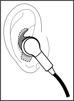 - Горната част на EarWing трябва да приляга плътно в гребена на ухото.