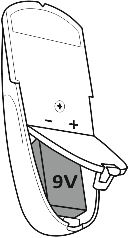 Не се опитвайте да развиете задната част на инструмента. Натиснете езичето на вратата на батерията в долната част на инструмента и отворете вратата. Поставете нова 9V батерия, като съобразите положителния (+) и отрицателния (-) полюс със символите, отпечатани на гърба. Закопчайте батерията на място и поставете вратата. Търсачите на греди и детекторите Zircon, особено тези с LCD екрани, изискват и консумират голямо количество ток от батериите.