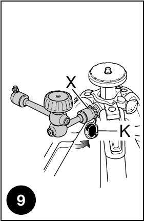 Триножникът има една 3/8" вътрешна резба "X" (фиг. 9), която може да се използва за прикрепване на аксесоари, като например рамена на Manfrotto, които от своя страна могат да поддържат светлини, монитори и др.