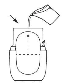 - Използвайте подходяща мерителна чашка, за да напълните водата в резервоара за вода. Никога не се опитвайте да пълните вода под течаща чешма или докато е включен.