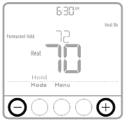 за да регулирате температурата. - Показва се TEMPORARY HOLD (ВРЕМЕННО ЗАДЪРЖАНЕ) и зададената температура мига. Докато мига, натиснете бутона Hold (Задържане) (Mode (Режим)), за да преминете към Permanent Hold (Постоянно задържане).