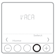 - Активният график за ваканция е обозначен чрез VACA над температурата, показана на началния екран на термостата.