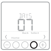 за да регулирате зададената температура за тези дни. Натиснете Select (Избор), за да активирате графика си за ваканция и да се върнете към началния екран на термостата.