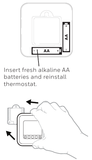 Когато се появи предупреждението за слаба батерия, натиснете леко, за да разхлабите термостата, и след това внимателно го издърпайте от стойката за стена.
