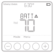 - Когато захранването на батерията е много слабо, подсветката на термостата е деактивирана, за да се пести енергия от батерията.