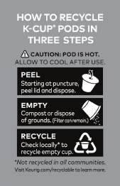Запарването е завършено, когато всички размери са осветени. Повдигнете дръжката и изхвърлете K-Cup® pod.