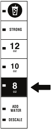 За по-наситена запарка, бутонът STRONG (силно) може да бъде включен преди или след като е избран размерът на запарката.
