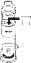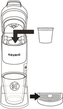 Поставете чаша върху тавата за отцеждане. Повдигнете дръжката и поставете K-Cup® pod в държача за K-Cup® pod. Спуснете дръжката напълно, за да затворите капака.