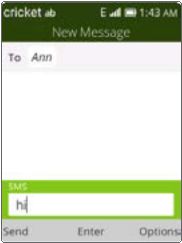 , за да съставите съобщението - Натиснете Left (Ляв) Soft (Софтуерен) клавиш