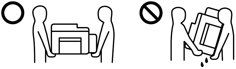 | За да предотвратите изтичане на мастило, дръжте продукта хоризонтално, когато го местите или транспортирате. Когато транспортирате бутилката с мастило, дръжте я изправена със затегната капачка и вземете мерки, за да предотвратите изтичане на мастило. | ![]() |