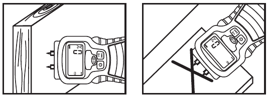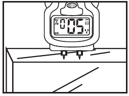 Поставете върха на сондата в материала, който ще бъде тестван (например дърво) и прочетете стойността в прозореца на дисплея. В същото време трябва да прозвучи акустичен сигнал.