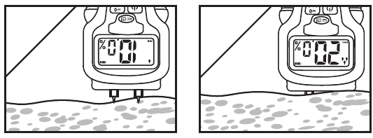 Когато измервате почва, ще получите ниски показания, ако показанията се вземат само на повърхността, и по-високи показания, колкото по-дълбоко натискате сондите в почвата. Измерената стойност ще се различава значително, ако вземете показания в рохкава или плътно опакована почва в цветна градина.