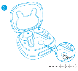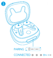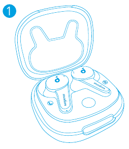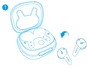 - Otevřete nabíjecí pouzdro (není třeba vyndávat sluchátka) a sluchátka se automaticky přepnou do režimu párování Bluetooth.