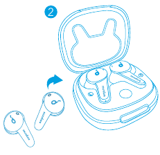 Otevřete nabíjecí pouzdro a sluchátka se automaticky zapnou.