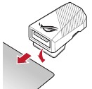 POZNÁMKA: Abyste zabránili poškození, položte myš na rovnou plochu a poté zatlačte joystick do patice, přičemž zajistěte, aby malý kruhový otvor směřoval nahoru.