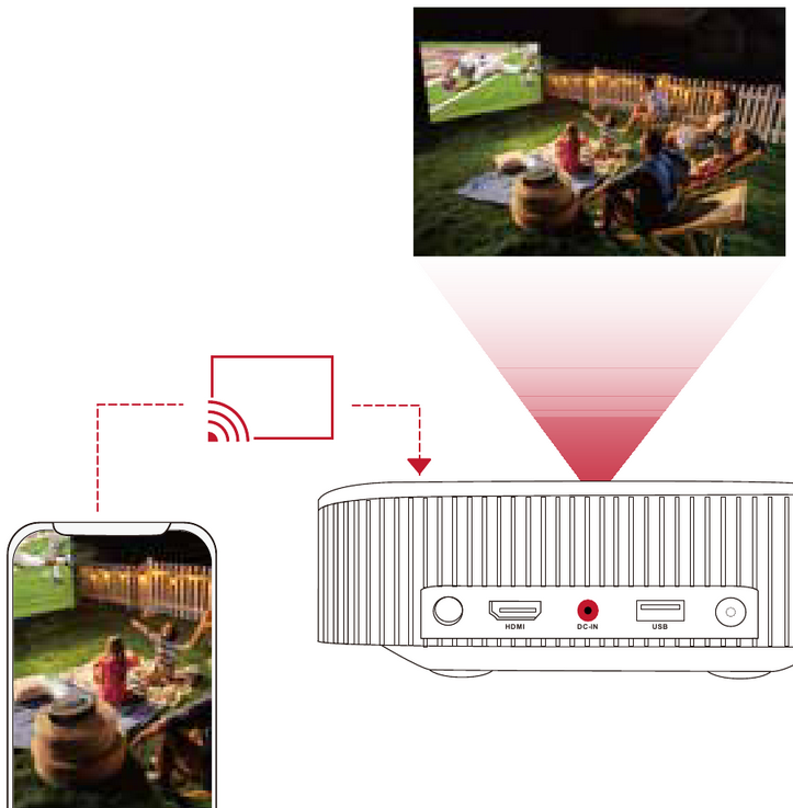 - Tento projektor bude zrcadlit obrazovku připojeného telefonu nebo počítače.