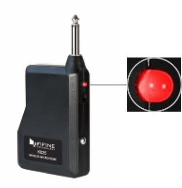 - Zapněte mikrofon a přijímač. Když se světlo na přijímači změní ze zelené na ČERVENOU, byly úspěšně spárovány. Světlo zůstane svítit ČERVENĚ , když funguje.
