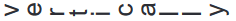 Každé písmeno vybere řádek pěti symbolových znaků, jak je uvedeno v tabulce níže. Všimněte si, že některé z komplexnějších tištěných symbolů jsou na displeji reprezentovány jednoduššími symboly.