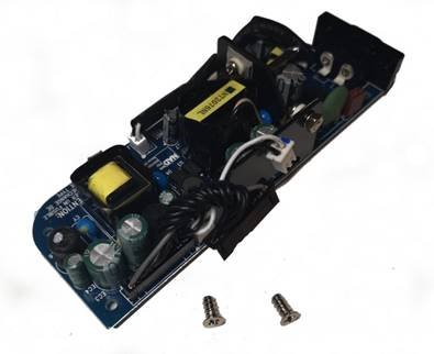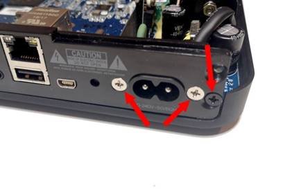 | Po instalaci by měly zůstat: tovární napájecí zdroj a dva stříbrné šrouby. Pokud se komponenty liší, zkontrolujte správnou montáž. | |