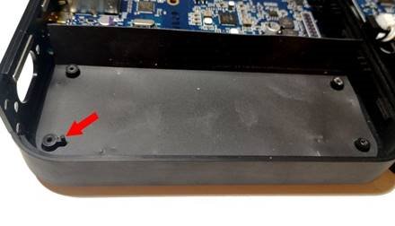 | Namontujte zadní panel - zašroubujte černý šroub do vyznačeného otvoru. | |