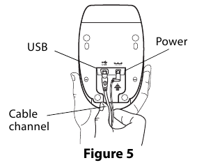 - Zasuňte napájecí a USB kabely do kabelového kanálu a položte tiskárnu.