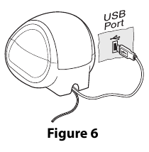 - Zapojte USB kabel do USB portu na spodní straně tiskárny. Viz obrázek 6.