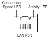 Port Gigabit Ethernet LAN poskytuje připojení k internetu s datovou rychlostí až 1 Gb/s. Následuje popis stavů diod LED portu LAN.