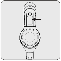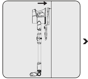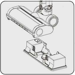 - Umístěte spotřebič na nabíjecí dok. Po umístění nádoby na prach na nabíjecí dok posuňte spotřebič směrem k nabíjecímu doku.