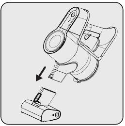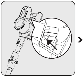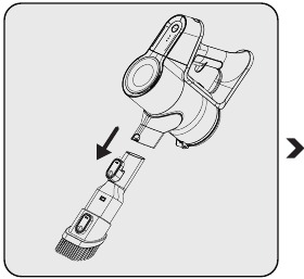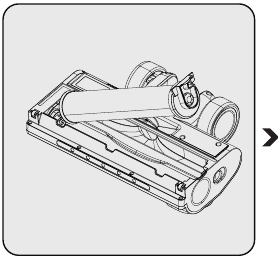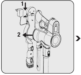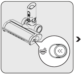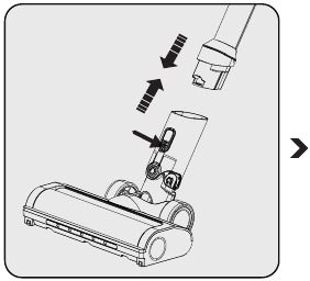 - Stiskněte tlačítko uvolnění elektrického turbokartáče na elektrickém turbokartáči a zatlačte jej ve směru šipky směrem k trubici.