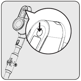 - Zatlačte trubici ve směru šipky směrem k tělu stisknutím tlačítka uvolnění trubice.
