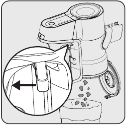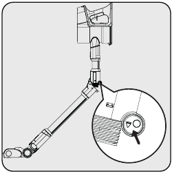 - Trubici můžete sklopit pro snadný přístup do oblastí, jako jsou křesla a pod stoly. Trubici můžete sklopit stisknutím kulatého tlačítkového mechanismu na levé straně, který umožňuje složení trubice.