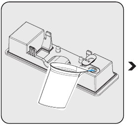 - Upevněte konektor nádoby na prach do otvorů na těle a poté upevněte nádobu na prach, dokud neuslyšíte cvaknutí.