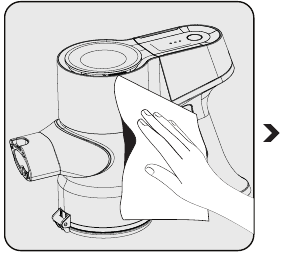 - Pokud je produkt zablokován cizím materiálem a sání je tak sníženo, ikona upozorní koncového uživatele, aby produkt vyčistil a zjistil hlavní příčinu.